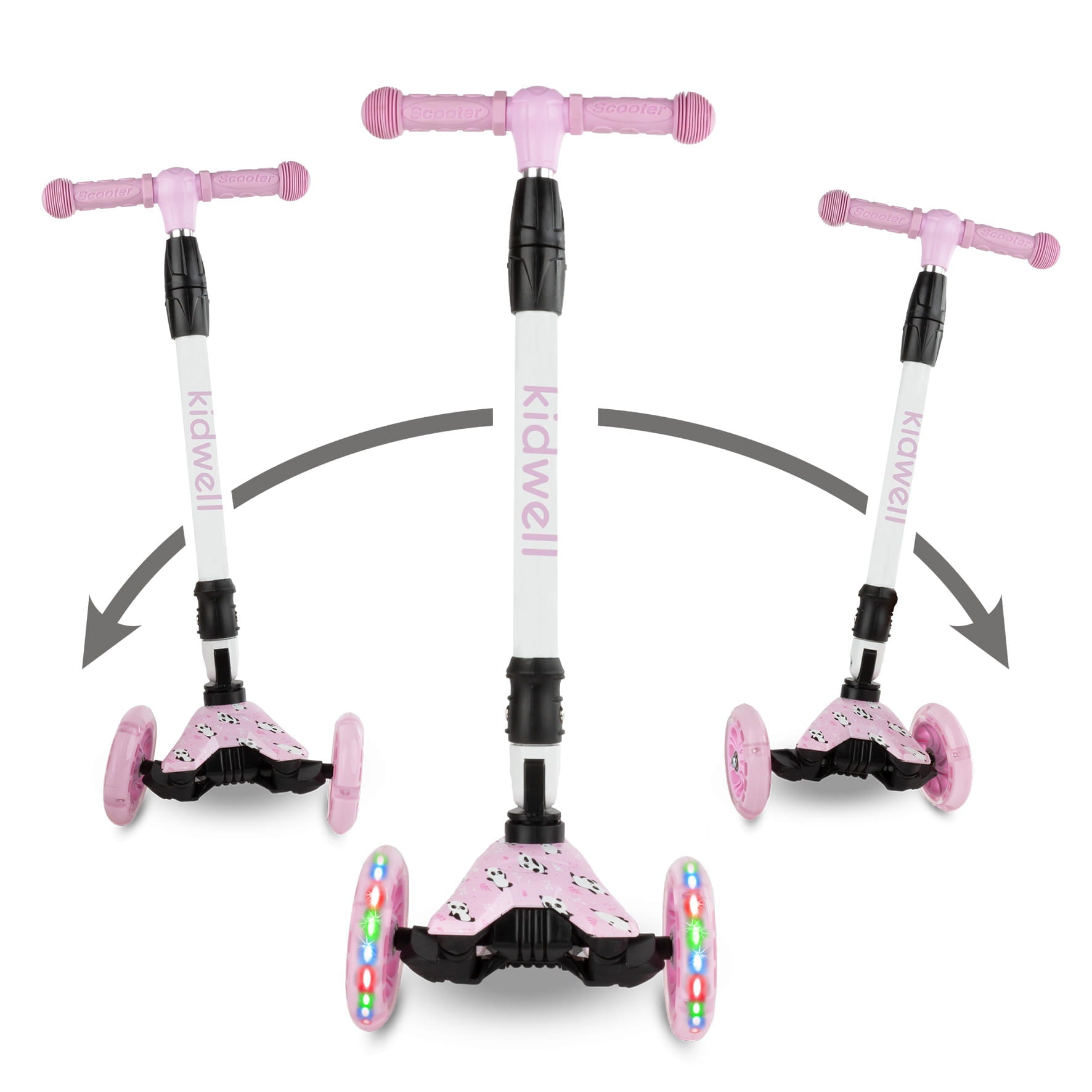 Trotinete de equilíbrio de três rodas VENTO. Concebida a pensar nas crianças e com atenção a todos os pormenores. A deslocação é suave e segura, e a aprendizagem da condução é fácil e agradável. A trotinete de três rodas VENTO é perfeitamente equilibrada, estável e tornar-se-á definitivamente a companheira de brincadeiras do seu filho. Rodas LED iluminadas e um design interessante farão as delícias de todos os pequenos utilizadores. Design durável e leve, pesando apenas 2,7 kg A trajetória larga da roda dianteira facilita a manutenção do equilíbrio Rodas silenciosas e duráveis que proporcionam uma óptima aderência ao solo LEDs integrados nas rodas, que brilham durante a condução Suspensão dianteira com eixo de direção dinâmico Sistema de dobragem rápida Guiador em alumínio com regulação em altura em 3 posições ngulo de direção limitado minimiza as mudanças de direção descontroladas Punhos do guiador ergonómicos Plataforma antiderrapante Travão no eixo traseiro Rolamentos ABEC-7 duráveis Embalagem colorida, a trotinete é perfeita para uma prenda Depois de desembalada, a trotinete está pronta a ser utilizada, não é necessária qualquer montagem. Design único Carga máxima da trotinete - 50 kg Concebida para crianças de 90 a 155 cm de altura Ajuste do guiador 66 - 76 cm Faixa etária 3+ A trotinete foi concebida, fabricada e certificada de acordo com os requisitos da União Europeia (norma de segurança EN 71) ESPECIFICAÇÕES: Marca: Kidwell Modelo: VENTO Materiais: Guiador de alumínio, plataforma de plástico, rodas de poliuretano com díodos LED Peso do produto: 2,7 kg Rodas: diâmetro dianteiro 12 cm, largura 2 cm; diâmetro traseiro 7,5 cm, largura 2 cm Peso máximo da criança: 50 kg Altura da criança: 90 - 155 cm Idade da criança: 3+. Informação do Fabricante: DERFORM SP. Z O.O