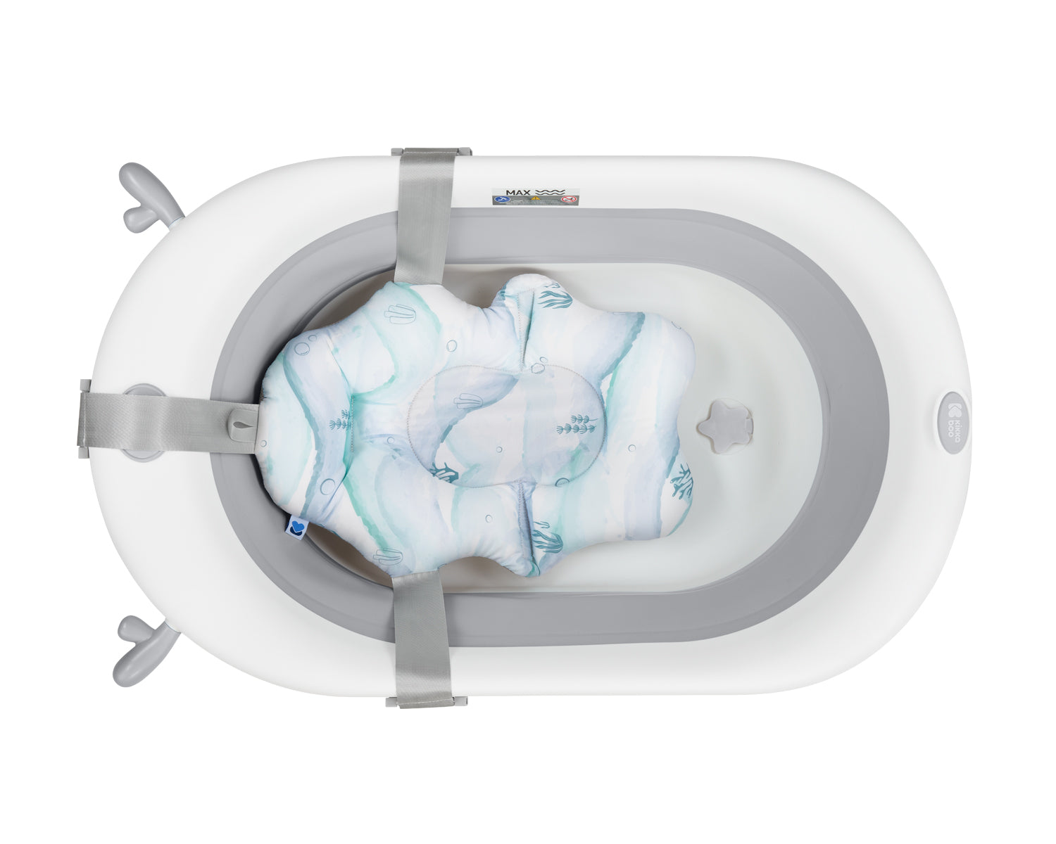 Adequado desde o nascimento até aos 24 meses; Materiais não tóxicos de elevada qualidade; O absorvente pode ser instalado em quase todos os tipos de banheiras para bebés; O banho sem mãos facilita o banho e permite brincar com o seu filho; Fabricado em tecido de secagem rápida; Macio, compacto e confortável de usar. Dimensões: - Produto: 49x7x34 cm / 0,19 kg - Caixa: 70x55x53 cm / 5 kg / 20 unidades/caixa