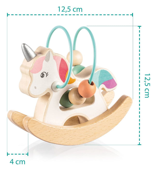 Brinquedo de madeira interativo que manterá o seu filho entretido por horas. Graças ao seu tamanho compacto, o unicórnio cabe perfeitamente nas mãos de crianças pequenas. O brinquedo desenvolve coordenação, habilidades motoras básicas, criatividade e lógica. O brinquedo é de madeira durável de alta qualidade e tintas à base de água. • Diversão por horas • Design de unicórnio • Dimensões compactas • Parte interativa • Desenvolve habilidades motoras, coordenação e lógica • Feito de madeira durável e tintas à base de água. Informação do Fabricante: Zopa Design S.R.O.